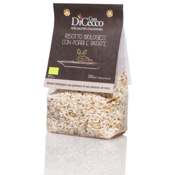 Ingredients: Carnaroli rice* 88%, potatoes* 4%, leeks* 2,8%, natural sea salt, rice flour*, onion*, celery*, carrot*, parsley*, extra virgin olive oil*, corn starch*, miso* (soya*, rice*, water, salt, koji), yeast extract, spices*.