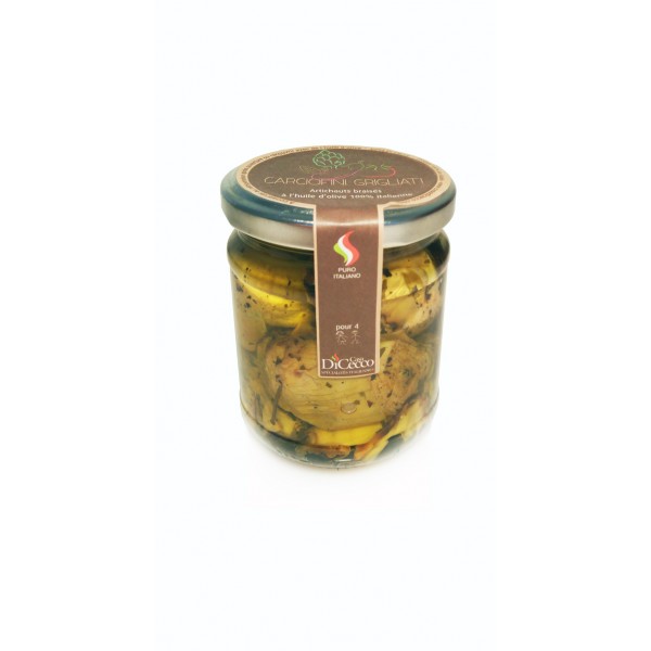 Ingrédients : artichauts (62%), huile d'olive (35%), menthe, ail, piment, sel, vinaigre. Antioxydants : acide citrique et ascorbique.