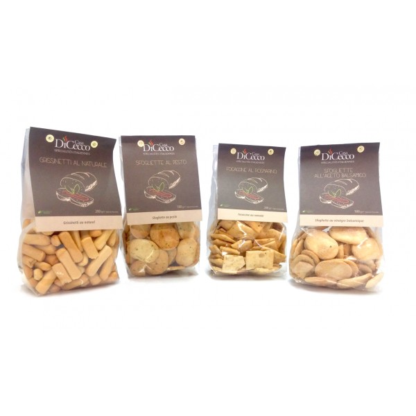 Le sfogliette sont produites naturellement et fabriqués à partir de matières premières de haute qualité basés sur des recettes anciennes. Zéro cholestérol, aucun gras trans, OGM zéro. Ici aromatisées au vinagre balsamique, excellent pour un aperò avec fromages et charcuterie.