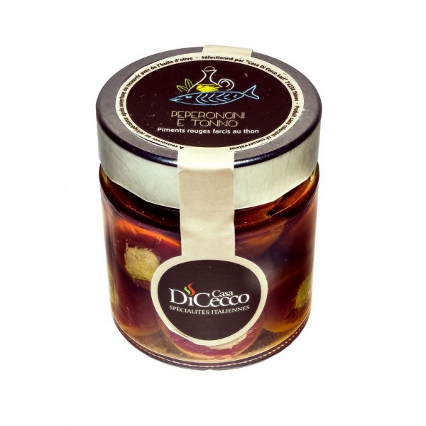 Ingredienti: peperoncino (50%), tonno (25%), olio d'oliva extra vergine, acciughe, capperi, aceto, sale.